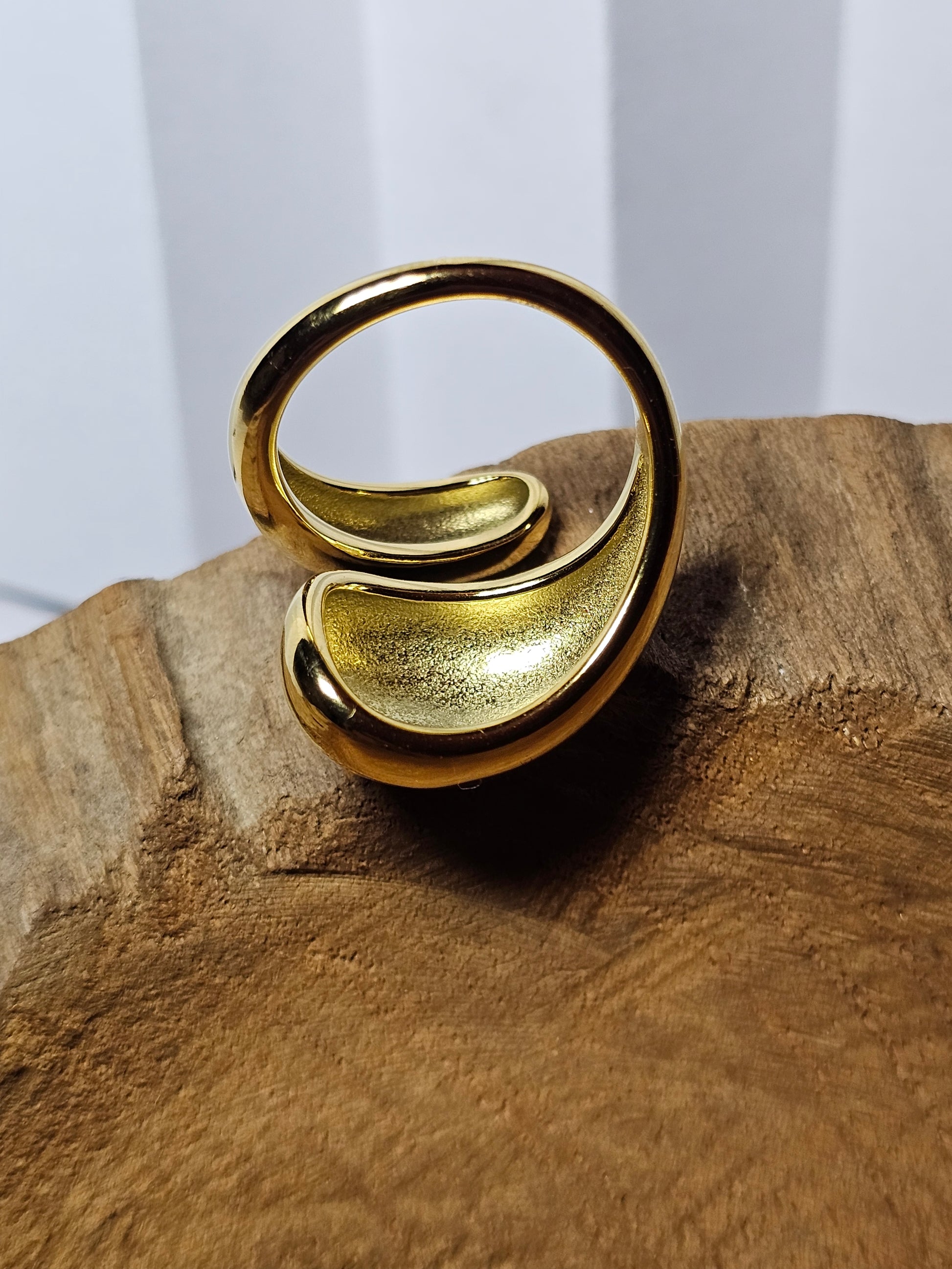 La bague Solyn est une bague ajustable dorée en acier inoxydable, hypoallergénique et résistante au quotidien ✨️
