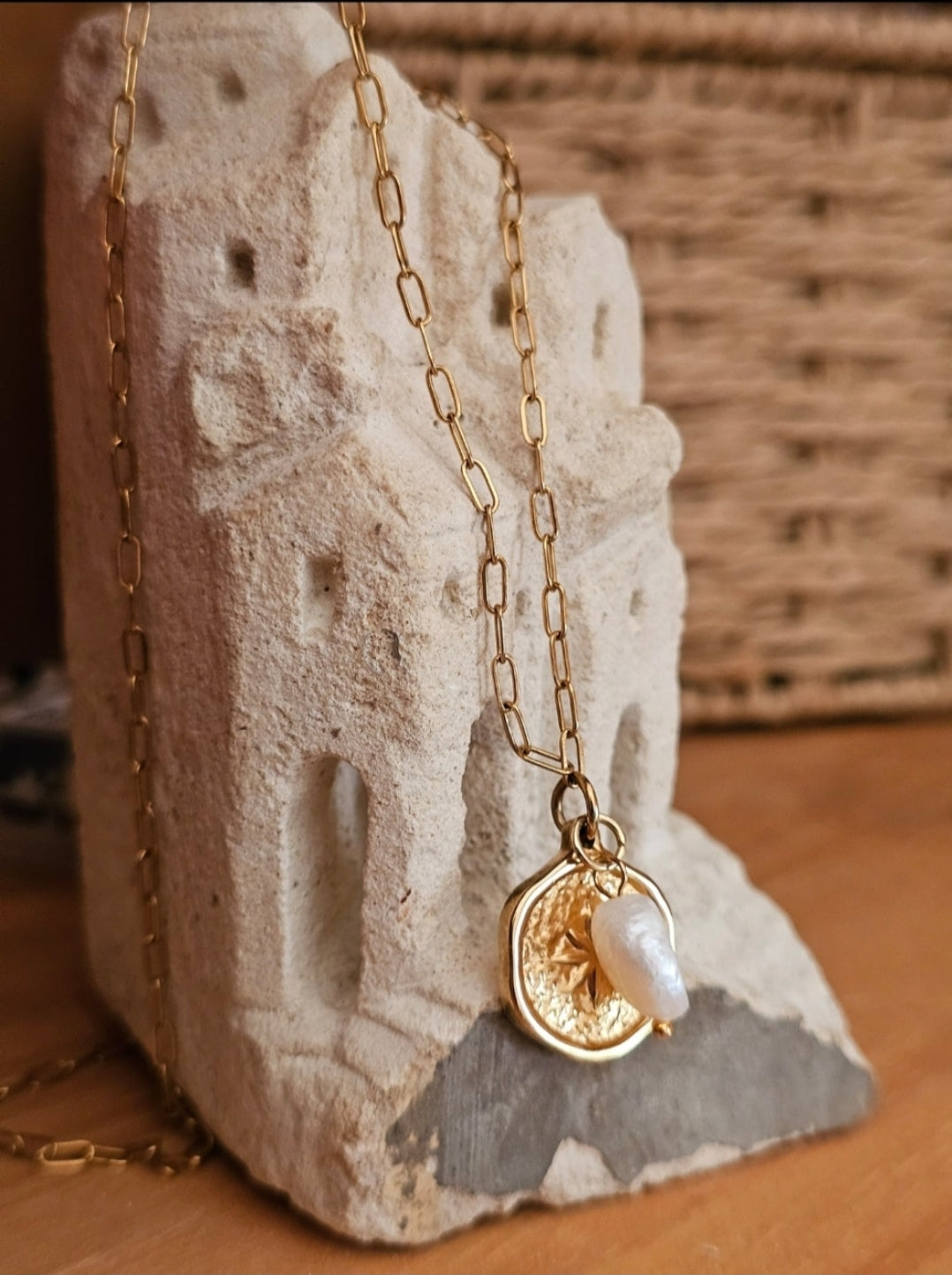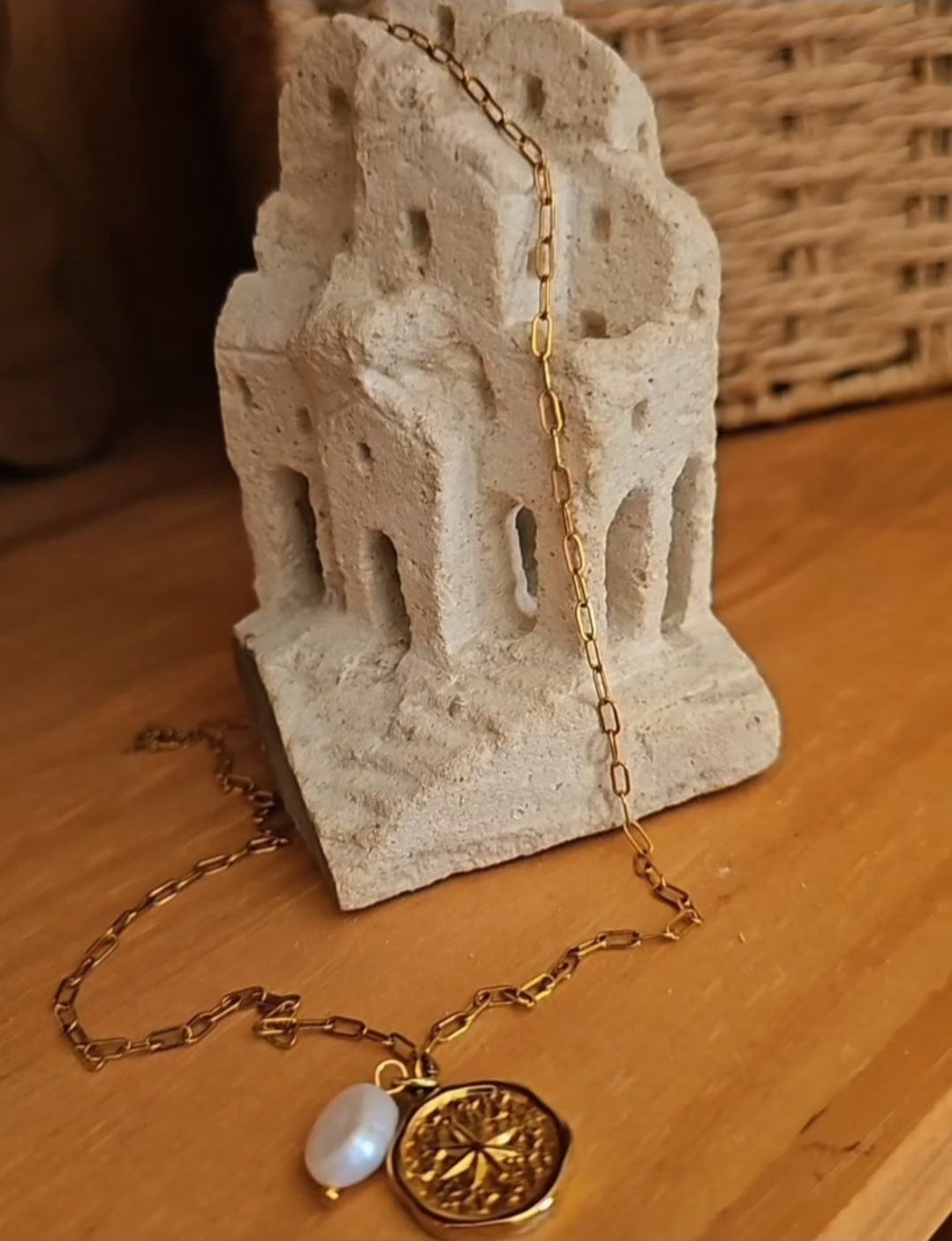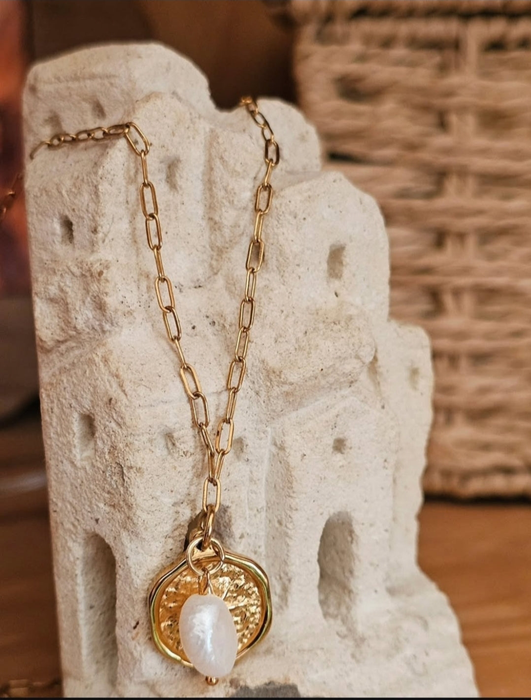 ✨ Le magnifique et élégant sautoir Jade, orné d’un médaillon céleste et d’une perle d’eau douce 🐚✨