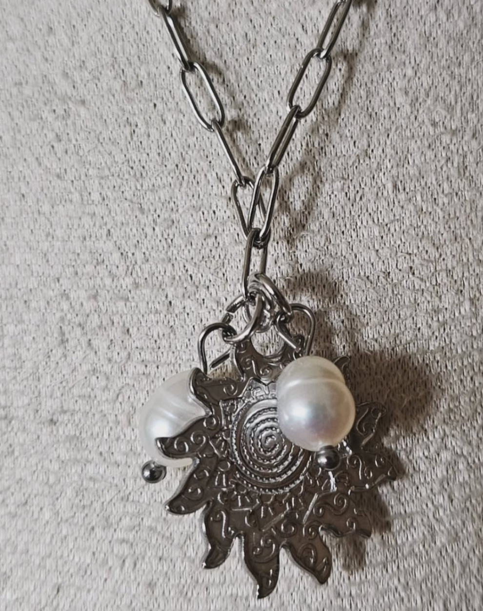☀️ Pendentif en forme de soleil orné de perles véritable